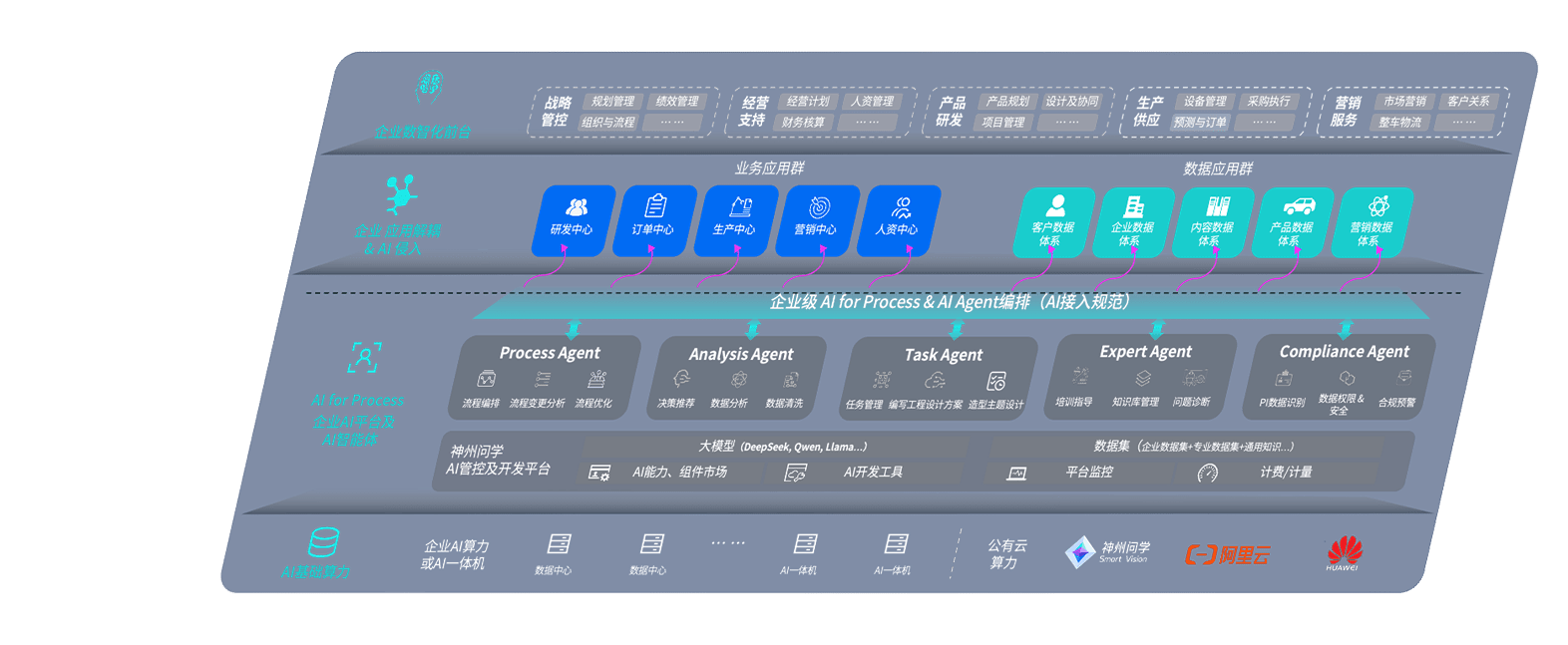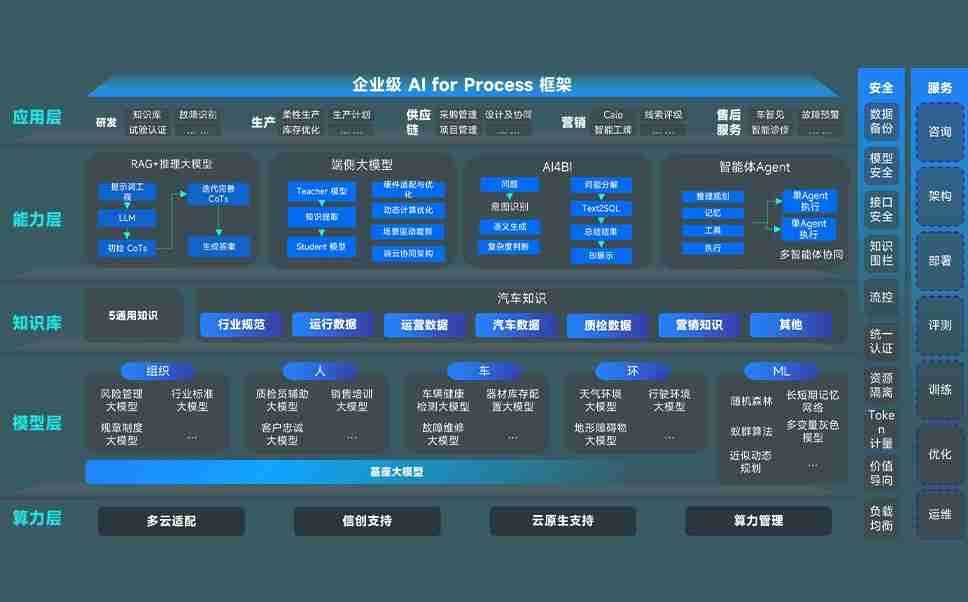 端到端的一站式AI工作空间深度融合了从企业战略规划到日常经营的全流程业务板块,,,,定向解决车企内部领域多、、、部门多、、链条长、、场景碎片化等难题,,,,支持车企快速构建以AI为核心的生产力写作体系,,,实现任务执行与AI能力的无缝集成与交互